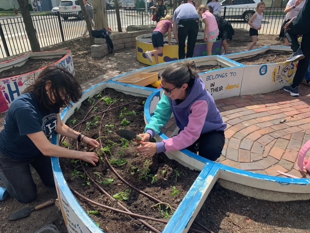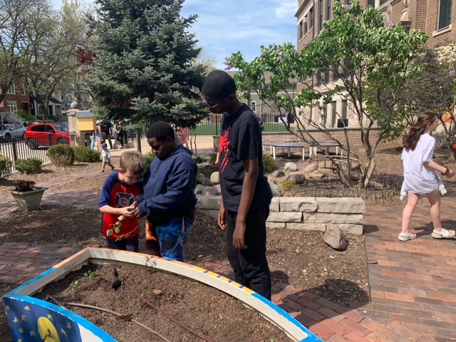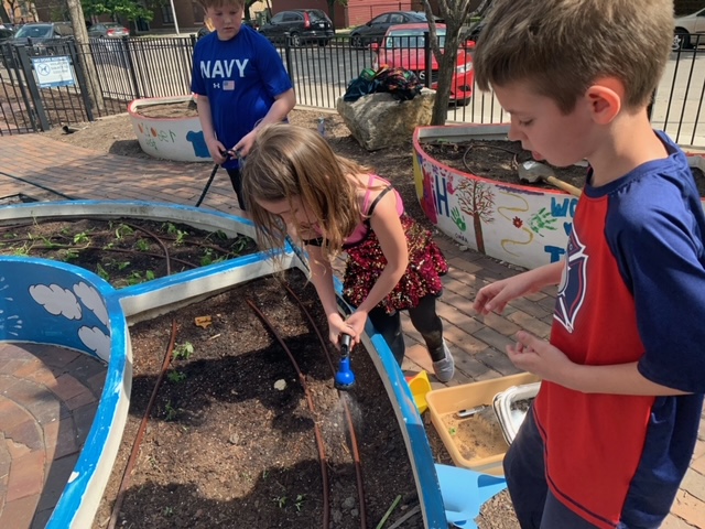 The students worked to provide the right amount of light and water to the seedlings to encourage their growth. And seedlings started indoors are in the process of being hardened off for a few hours outdoors most days. This helps the plants grow strong stems to hold up to the natural elements, and curious hands from our kids, once they are planted outdoors.